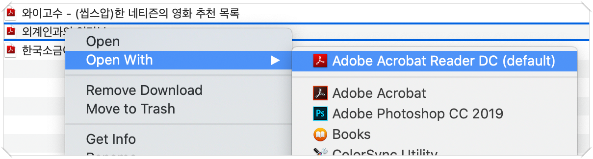 위 그림에서 보듯 PDF 파일에 대한 기본 실행 앱이 Acrobat Reader로 변경된 것을 확인할 수 있습니다. Fin.