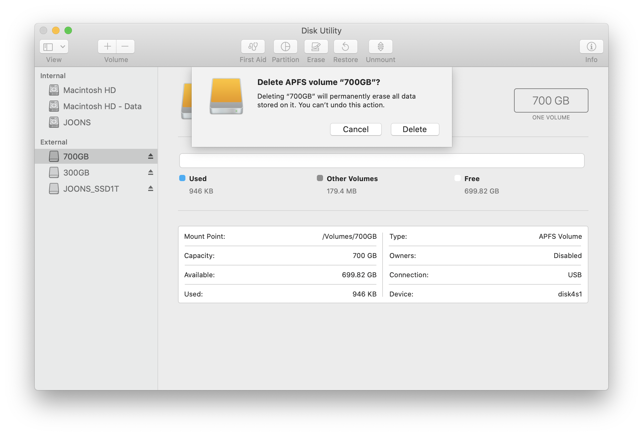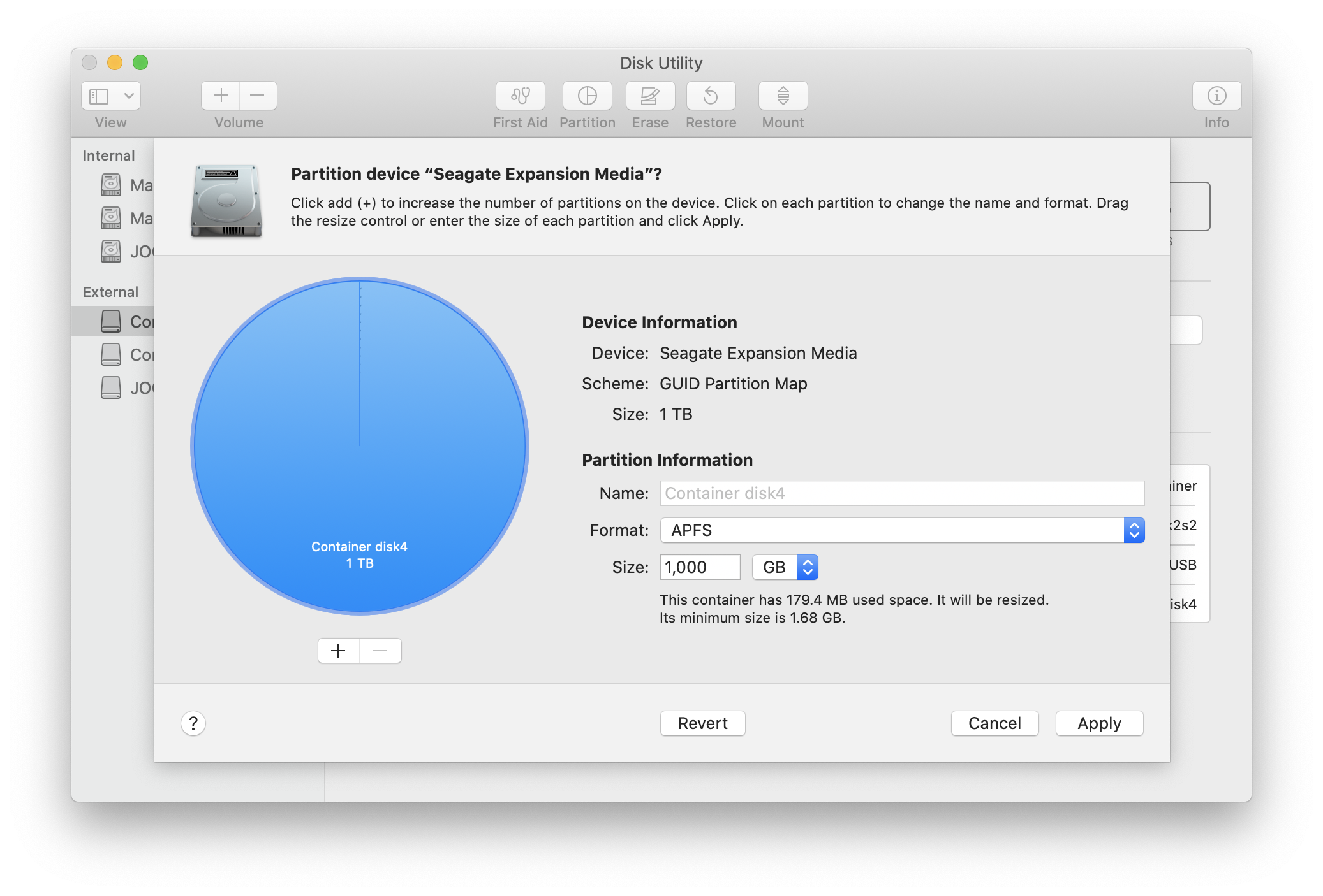 🐽 macOS Catalina 환경에서 1TB 외장 하드 파티션 나누기 (700 + 300GB로)