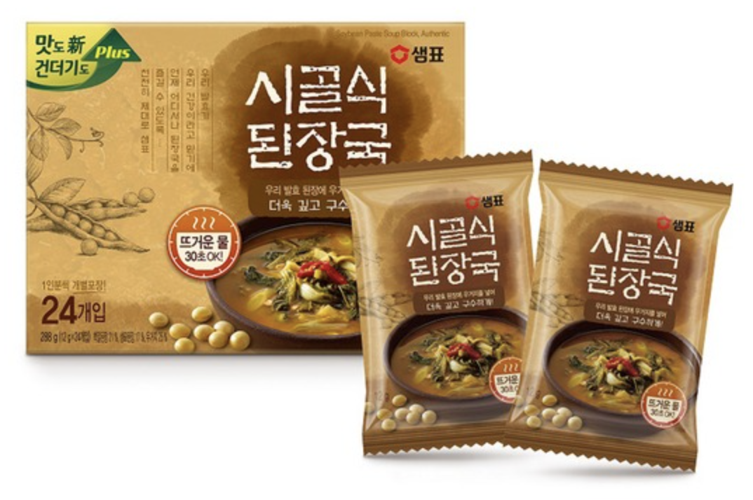 동결건조된 블록으로, 내용물은 된장, 우거지, 홍고추, 다시마, 멸치엑기스 등이다.