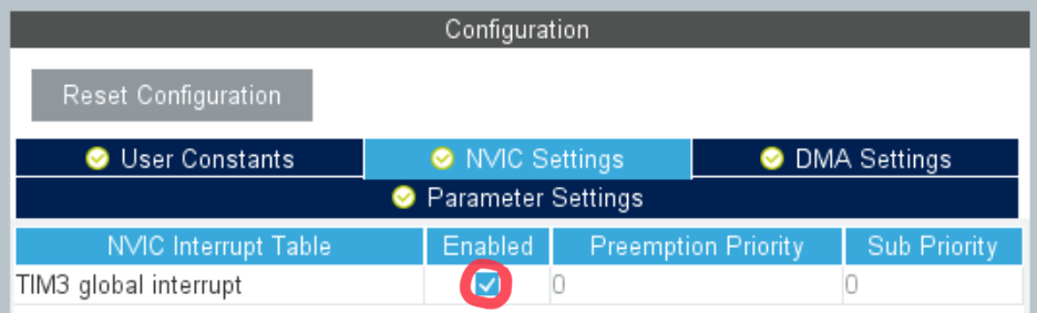 코드에 Timer3에 해당하는 ISR을 생성하기 위해 아래와 같이 NVIC Settings에서 체크박스에 클릭! 만 하면 끝.