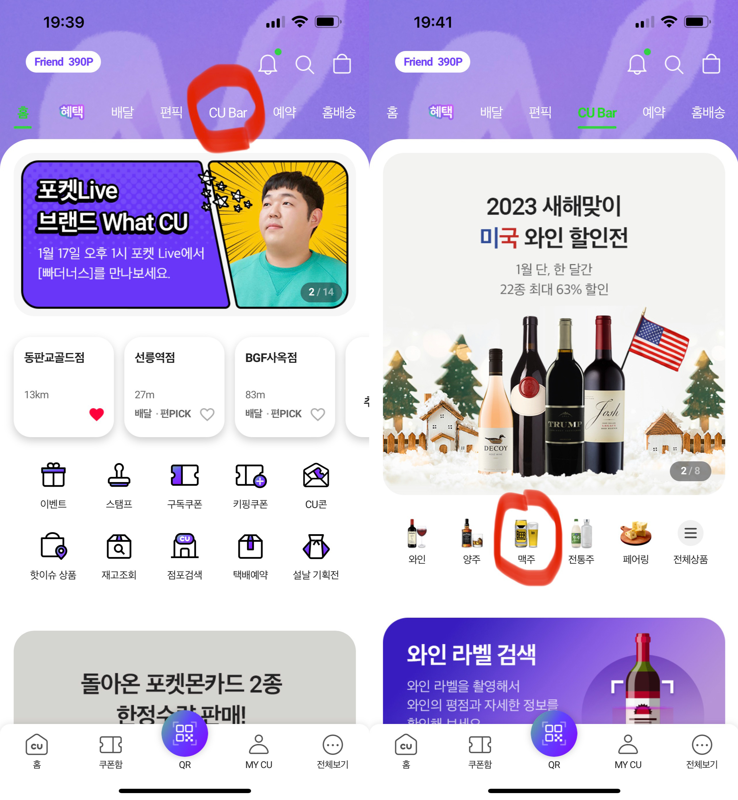 자, 자신의 스마트폰에 '포켓CU' 앱을 설치하고 가입을 한 후 주류 구입을 위한 성인인증까지 마치자. 홈 화면 맨 위 메뉴에서 'CU Bar'를 선택, 다음 화면에서 주류 종류 중 '맥주'를 선택하면 스마트오더로 구입할 수 있는 맥주 리스트가 나온다. 그중 특가로 나온 제품들을 보자.