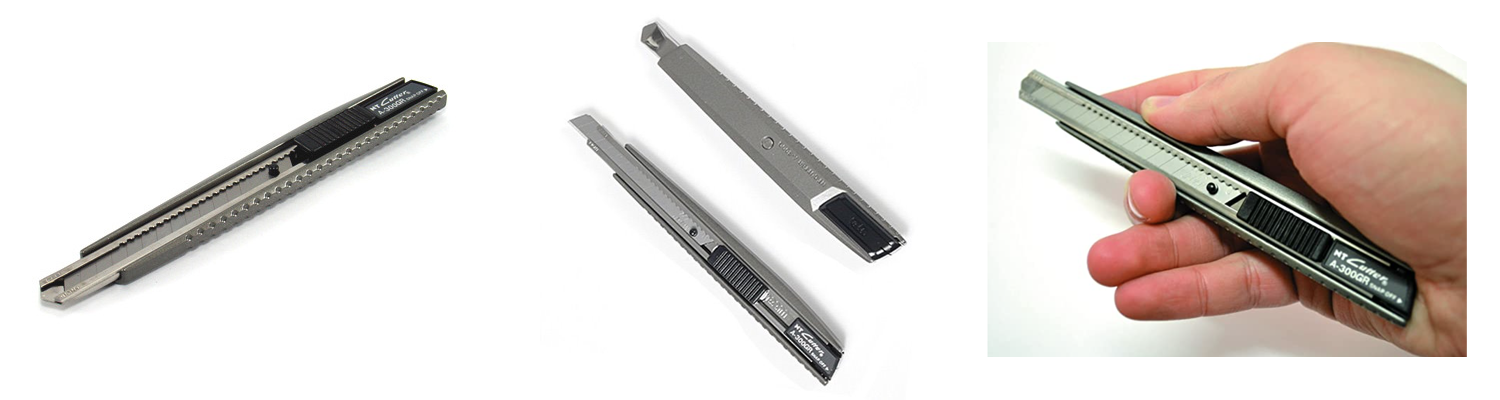 위 타지마 모델과 거의 동일한 본체가 삽입된 형태의 커터. 내가 가장 현혹되었던 사양은 외형이 플라스틱이 아닌, 알루미늄 다이캐스팅인 철제로 만들어졌다는 것. 고로 손에 쥐었을 때, 전해지는 무게감이 제대로라 그것이 그대로 견고함으로 치환되어 안정감까지 느껴진다. 바로 이런 느낌이 내가 툴을 좋아하는 이유다.