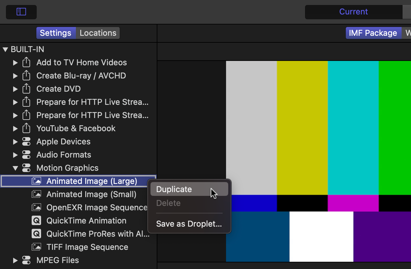 Settings ➟ BUILT-IN ➟ Motion Graphics ➟ Animated Image (Large)(마우스 오른쪽 버튼) ➟ Duplicate