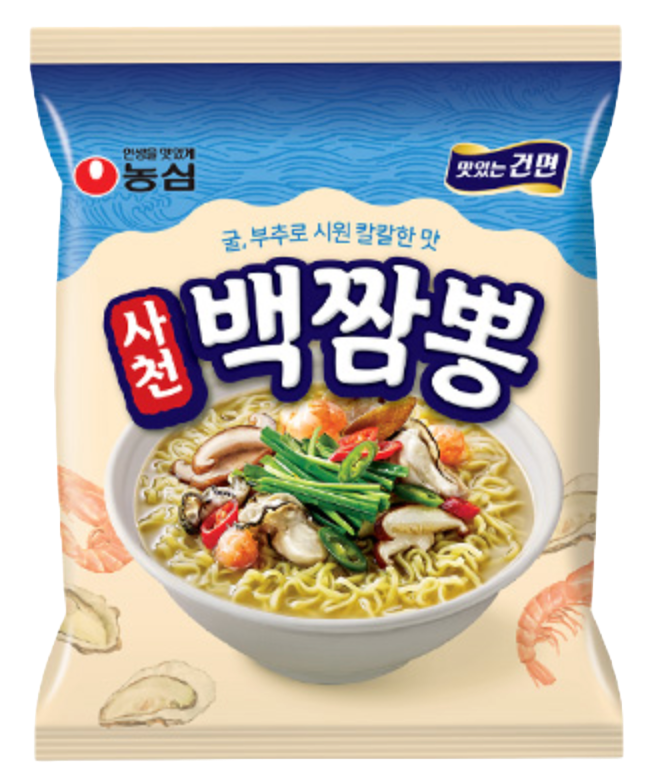 사천 백짬뽕(94g) - 건면. 굴, 부추로 시원 칼칼한 맛.