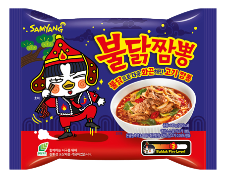 불닭짬뽕(140g) - 고기 육수. 매운 국물. 조미유.