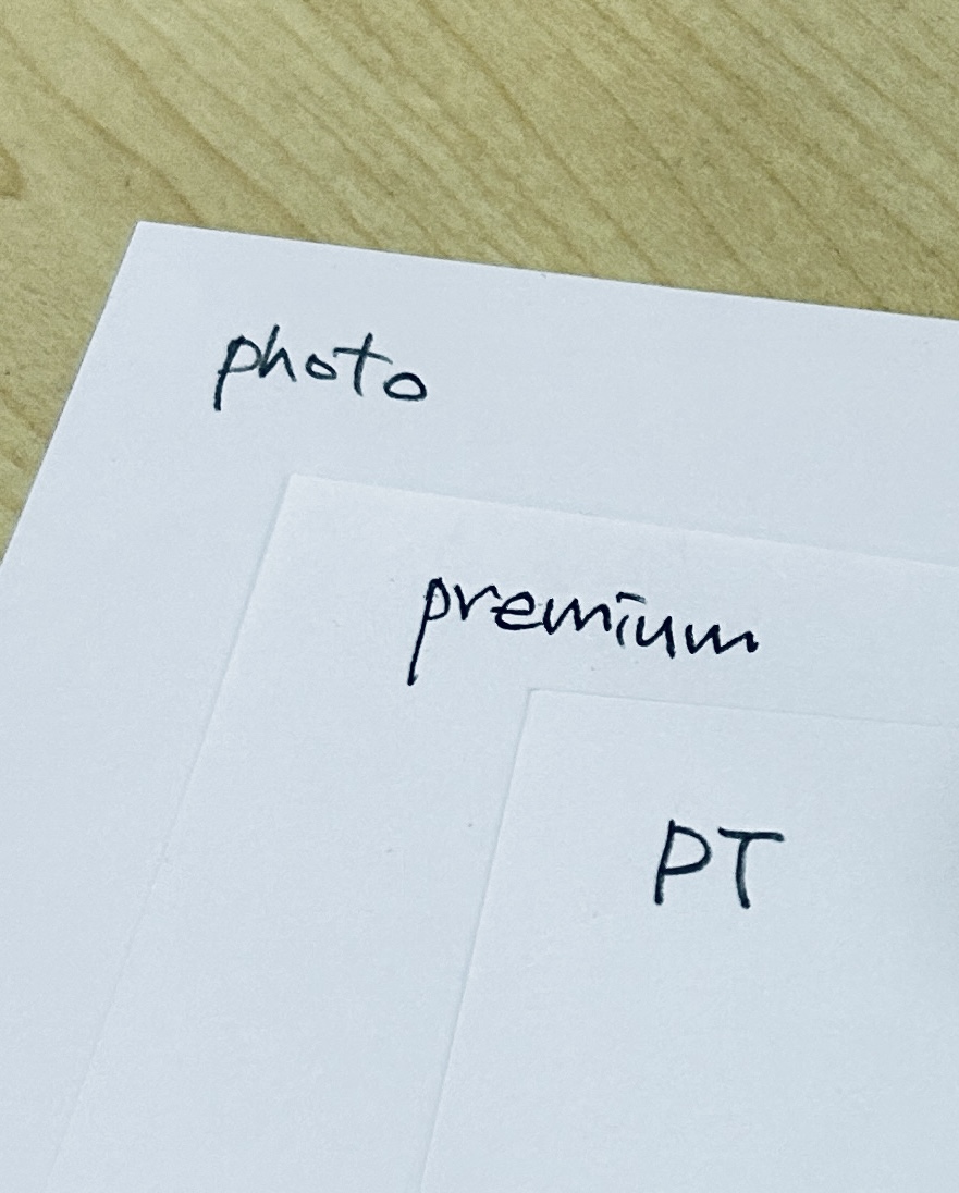 가격만 놓고 본다면야 75g을 써야 맞는 거겠지만 손에 닿는 느낌이나 필기할 때의 느낌 등, 종합적인 점수를 매겼을 때는 80g 이상은 되어야 맛이 있다. PT와 Premium은 별 차이가 느껴지지 않았고, Photo는 확실히 두꺼운 맛이 느껴진다. 연습장용으로 사용하려는 목적이니 나의 선택은 좀 더 저렴한 PT가 되겠다.
