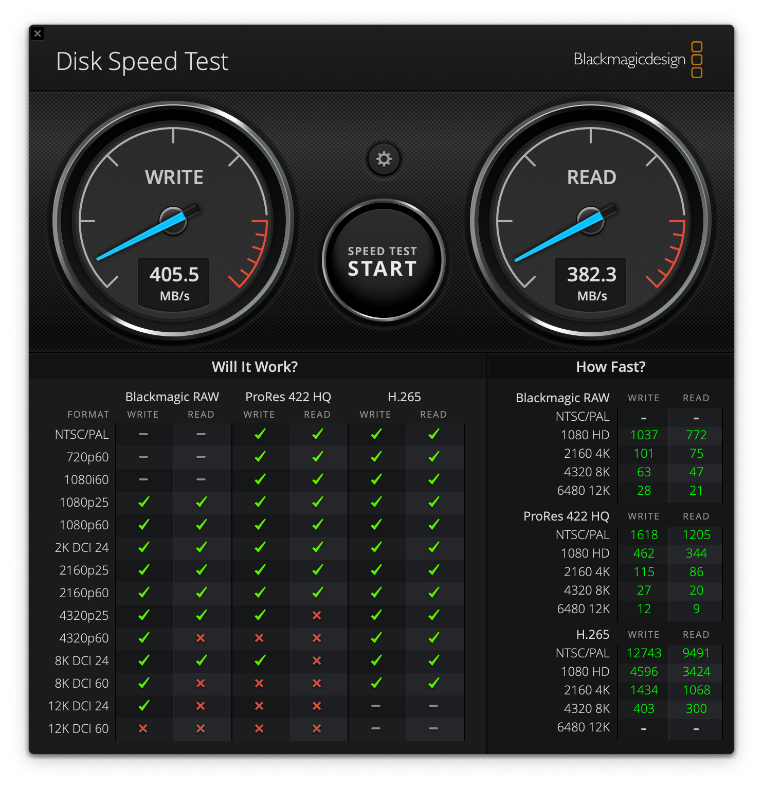 제품 데이터시트에는 최대 540MB/s라 쓰여있지만 테스트 결과는 400MB/s 정도.