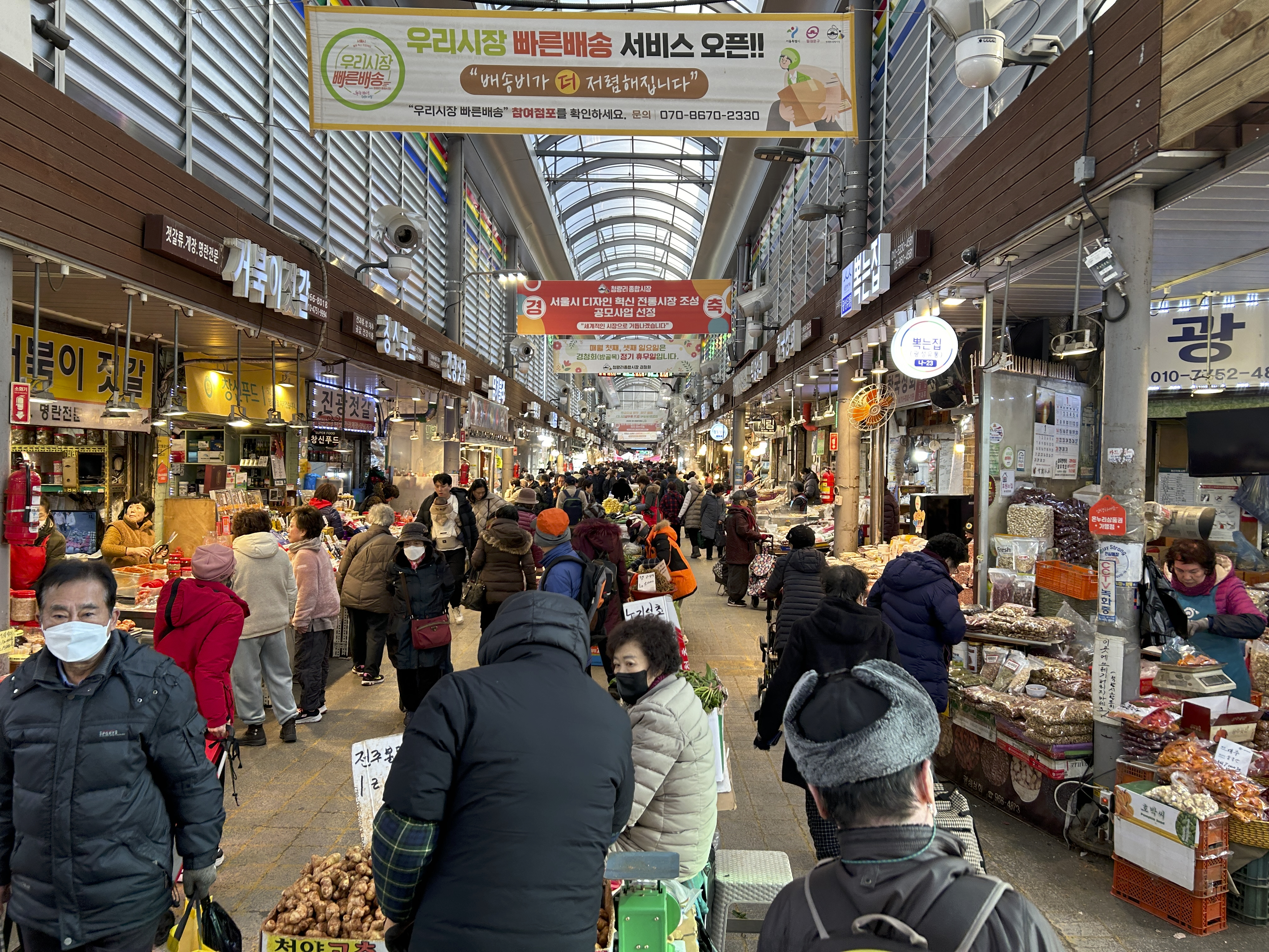 버스를 타고 을지로 조명가게들을 지나... 목적지는 경동시장 신관 지하에 있는 식당.