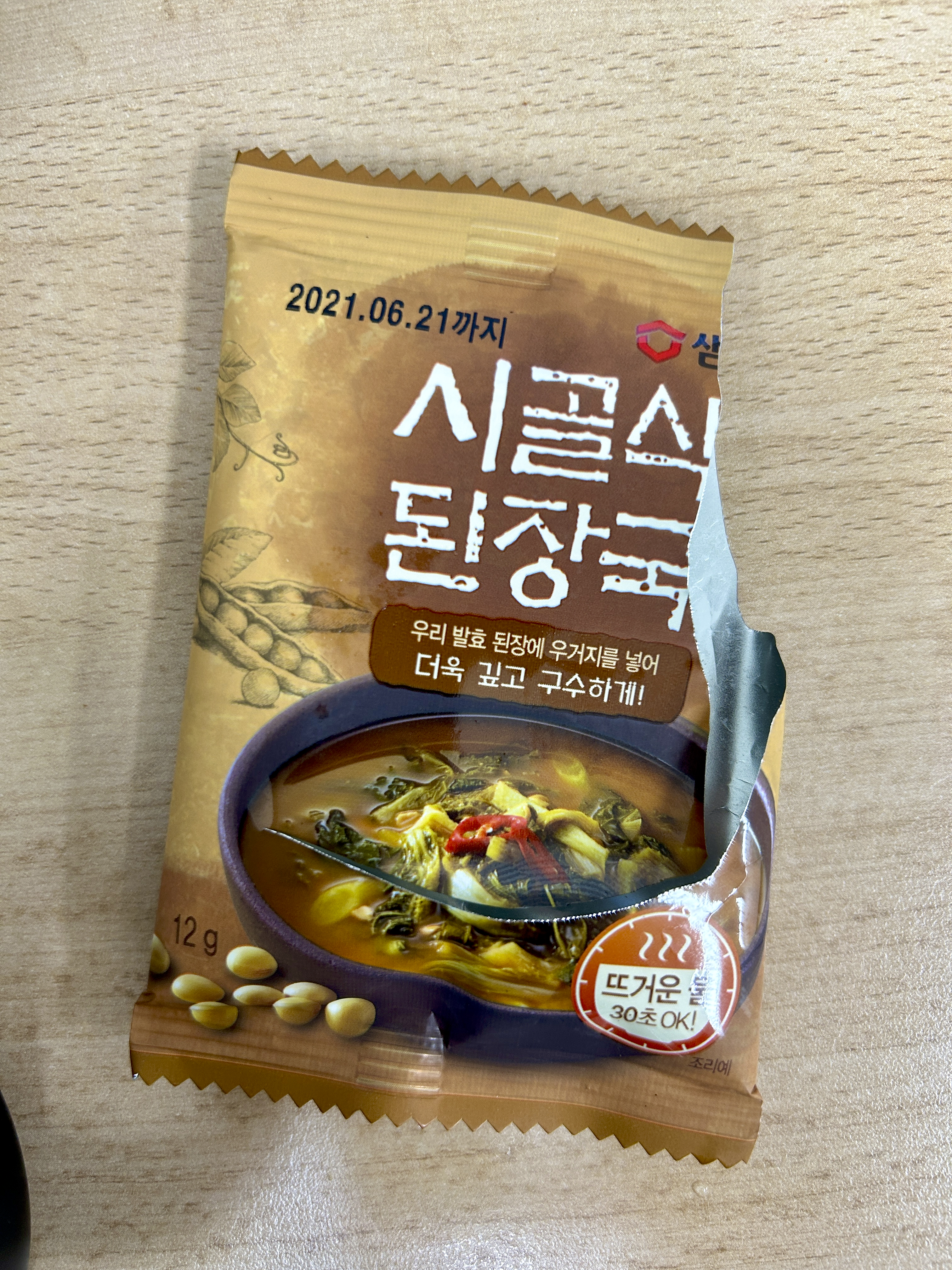 샘표 시골식 된장국이라는 즉석국 제품이 있다. 건조한 블럭 형태로 뜨거운 물 200㎖을 붓고 30초 정도 지나서 먹으면 된다. 싱크대 장 안에서 유통기한 2021년 6월 21일인 - 그러니까 3년 좀 안되게 지난거다 - , 안쪽에 있어 눈에 띄지 않던 몇 봉을 찾았다. 먹을까 버릴까 잠깐 고민하다 처음부터 바싹 말라있는 제품이라 문제 없을꺼란 생각에 먹어 봤더니... 역시나 맛에도 아무 문제 없이 그대로였다.