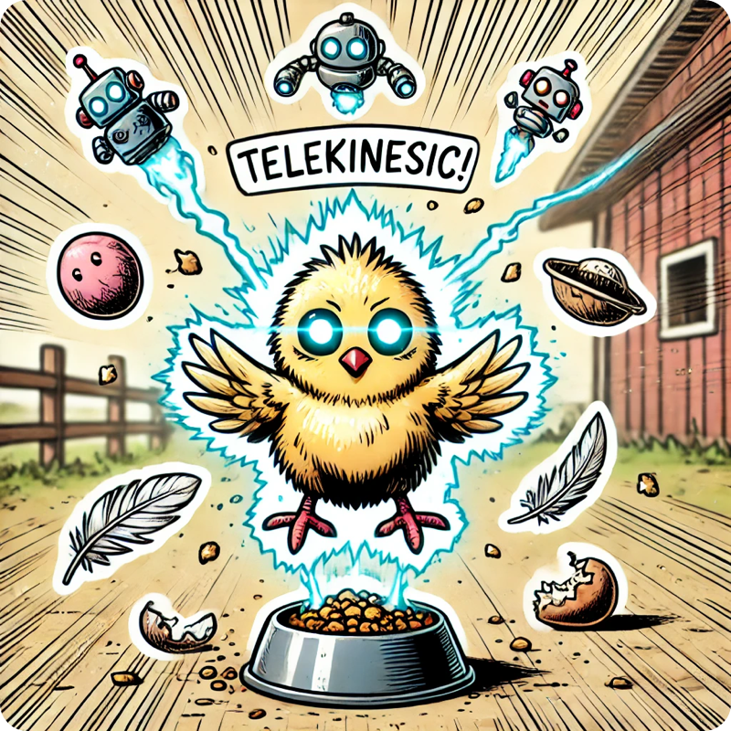 어미 닭과 분리된 상태에서 태어난 병아리는 로봇에 대한 특별한 애착을 형성했다. 이 실험의 핵심은 투명한 우리 안에 병아리를 넣고, 무작위로 움직이는 로봇이 일정한 방향성을 갖게 되는지를 관찰하는 것이다. 즉, 병아리의 생각이 로봇을 자신에게 끌어당기는 영향을 미칠 수 있을까? 아니면 그저 우연일까?