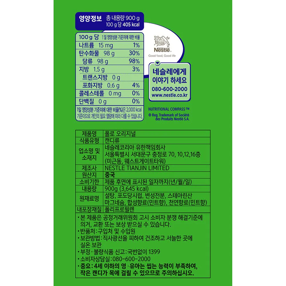 설탕, 포도당시럽, 변성전분, 스테아린산마그네슘, 합성향료(민트향), 천연향료(민트향)